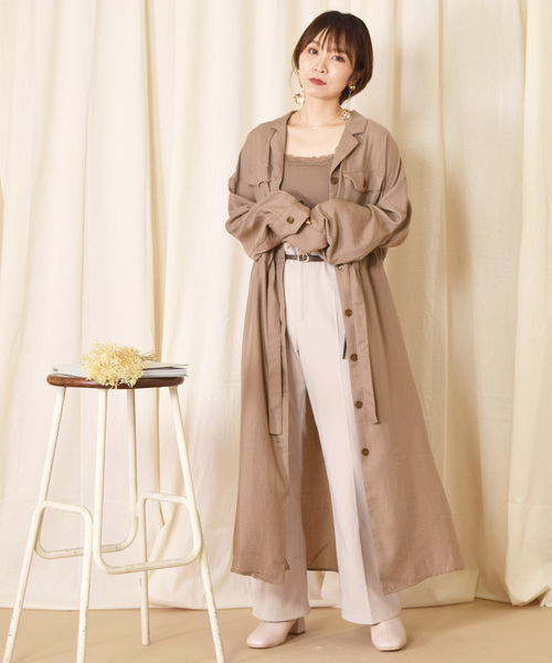 W ワンピースcloset ダブルクローゼット のファッション ピーチベルト付きワンピース シャツワンピース W
